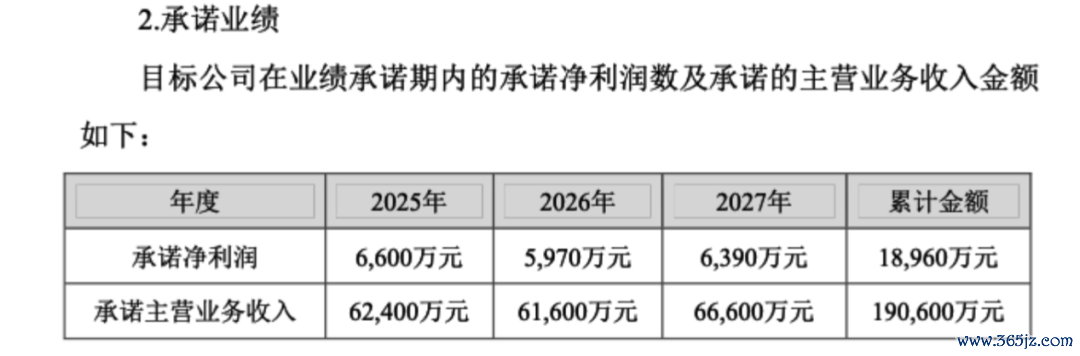 对于收购后的业绩,对方承诺,聚药堂需在2025年至2027年的三年中,累计完成净利润1.896亿元,主营业务收入累计完成19.06亿元。